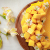 – Xoài tươi, kem tươi, vòng socola trắng (theo mẫu) và hoa trang trí